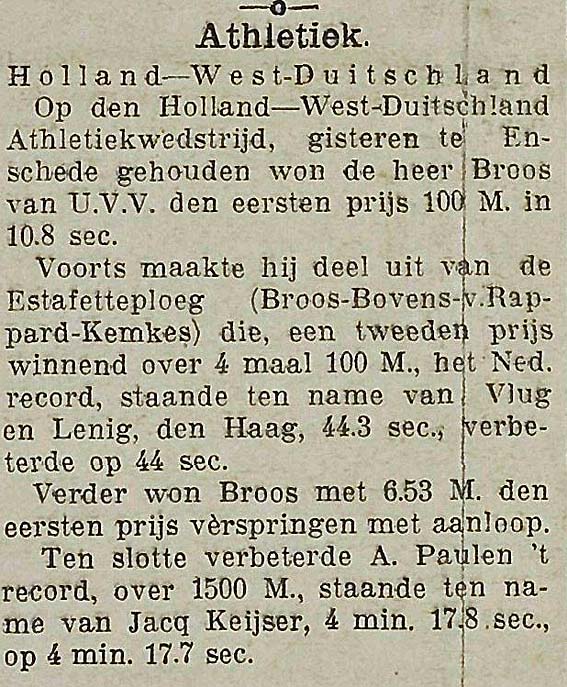 Zoals veel voetbalverenigingen had UVV ook een atletiekafdeling.
