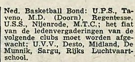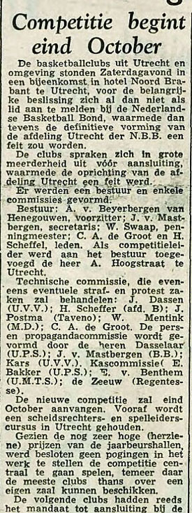 Het Utrechts Nieuwsblad schreef op 3 oktober 1955 over de oprichting van de afdeling Utrecht van de Nederlandse Basketbalbond.U.V.V. werd genoemd als startende vereniging.