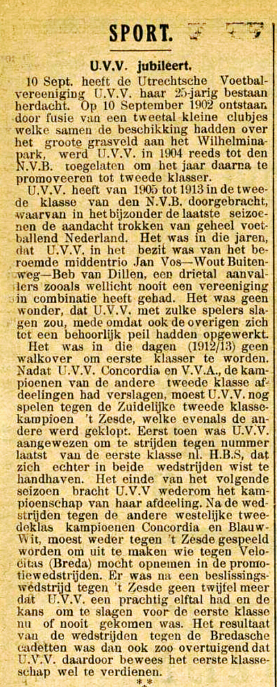 Het Utrechts Nieuwsblad deed op 8 september 1927 verslagĀ