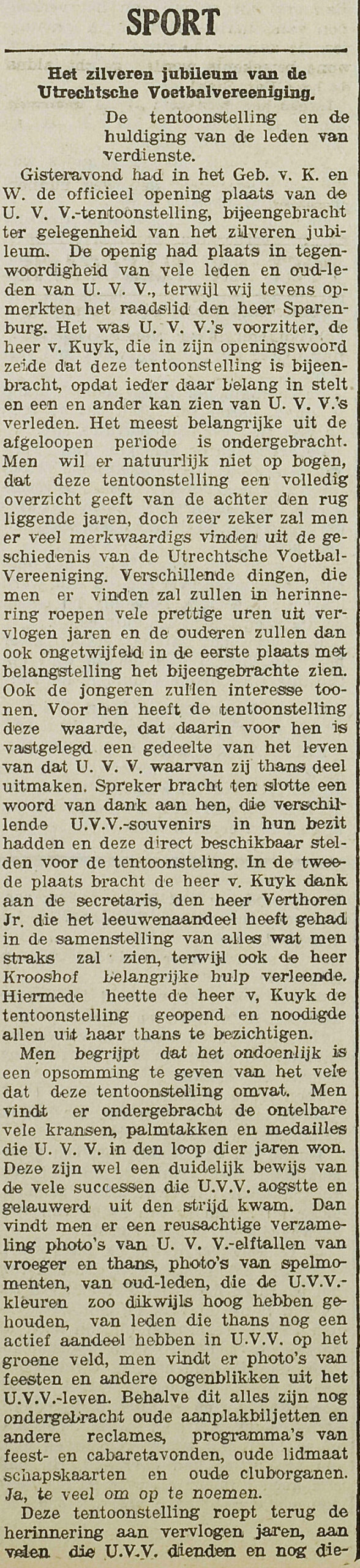 Zelfs in de Sumatrapost werd verslag gedaan van het 25 jarig bestaan van U.V.V.