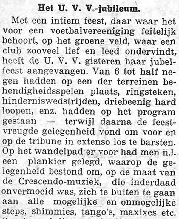 Het seizoen 1922-1923 begon met veel festiviteiten, want de U.V.V. bestond 20 jaar.