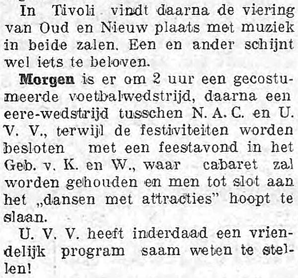 En tot besluit een erewedstrijd van U.V.V tegen N.A.C. uit Breda.