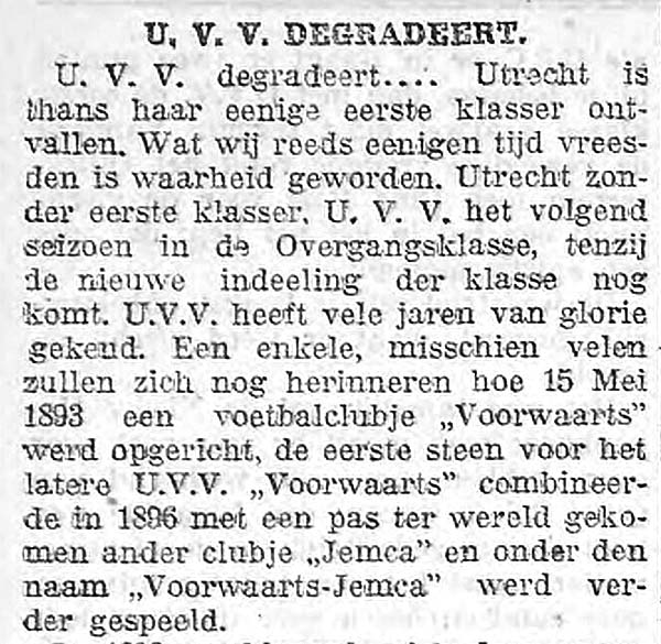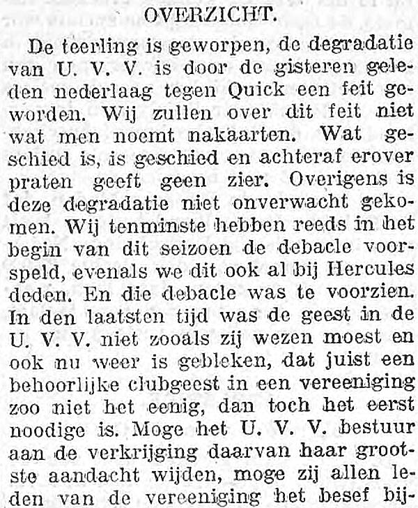 Op 23 april 2023 wijdde het Utrechts Nieuwsblad twee een artikelen aan de degradatie van U.V.V. met de titels ‘DEGRADEREN’ en ‘OVERZICHT’