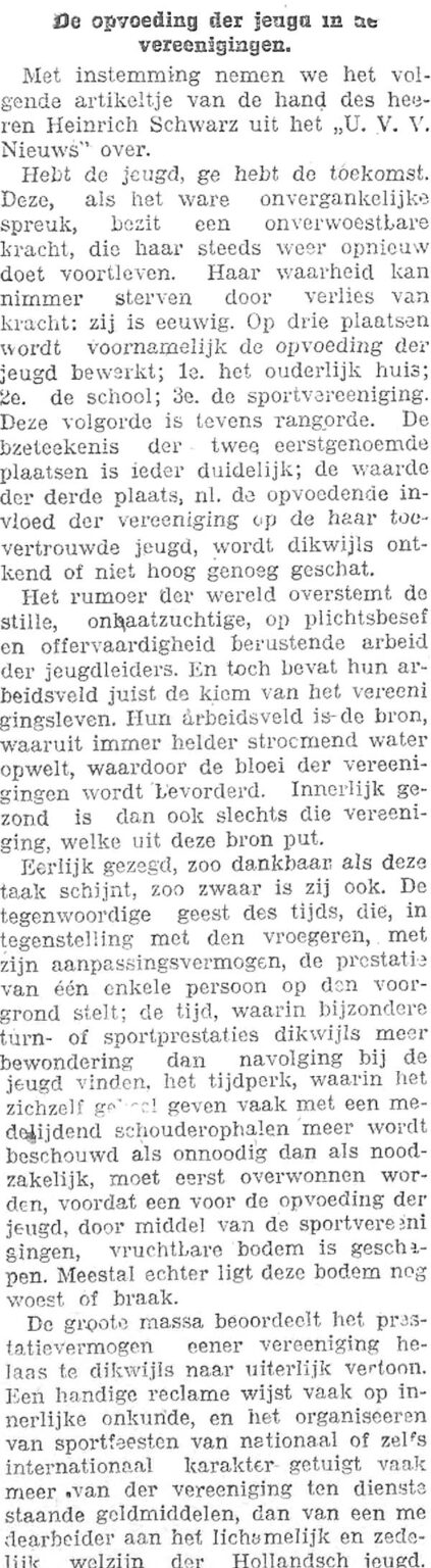 Een artikel van Heinrich “Pappie” Schwarz, oefenmeester en jeugdtrainer van U.V.V.