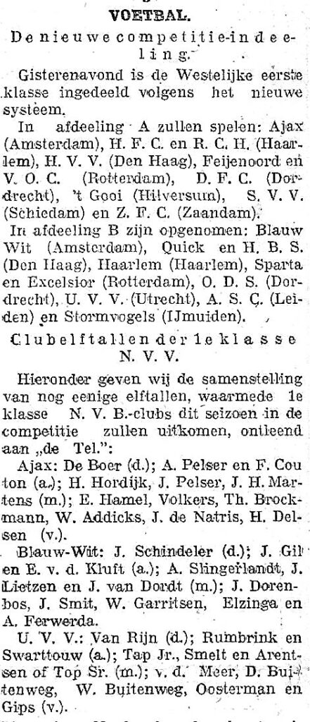 Het Utrechts Nieuwblad publiceerde op 4 september de nieuwe competitie-indeling van de eerste klasse.