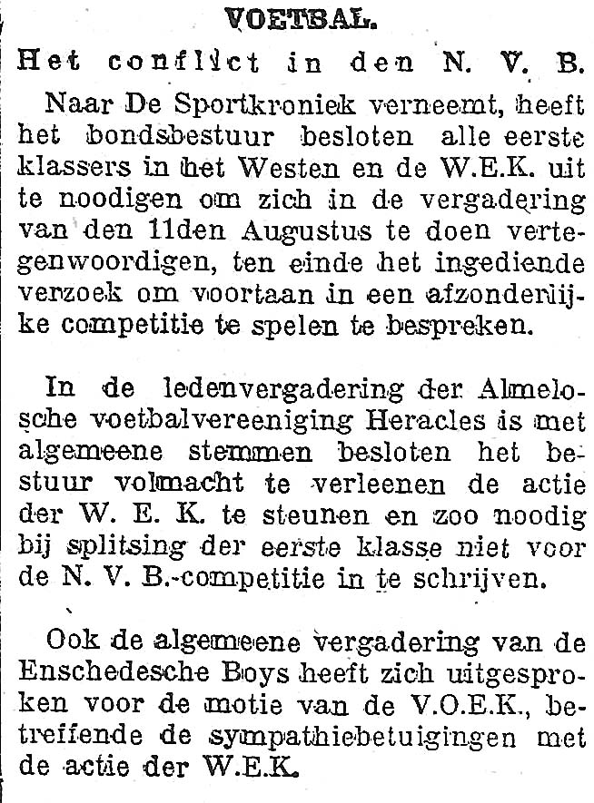 De N.V.B. (=Nederlandse Voetbal Bond) streefde naar een nieuwe competitie-indeling. Een indeling met minder eerste-klassers.