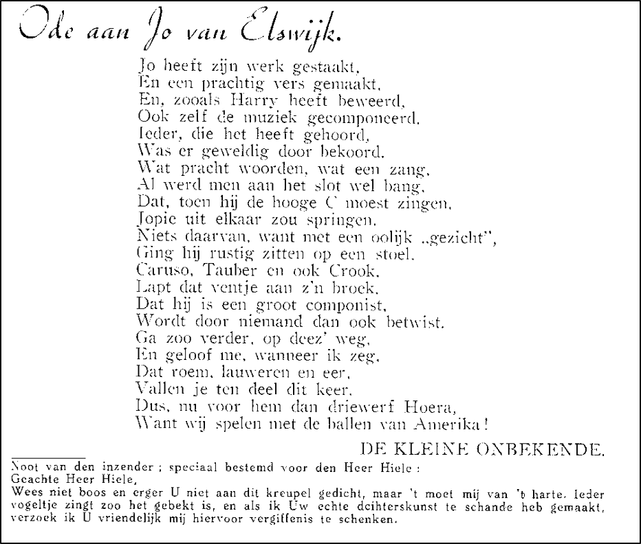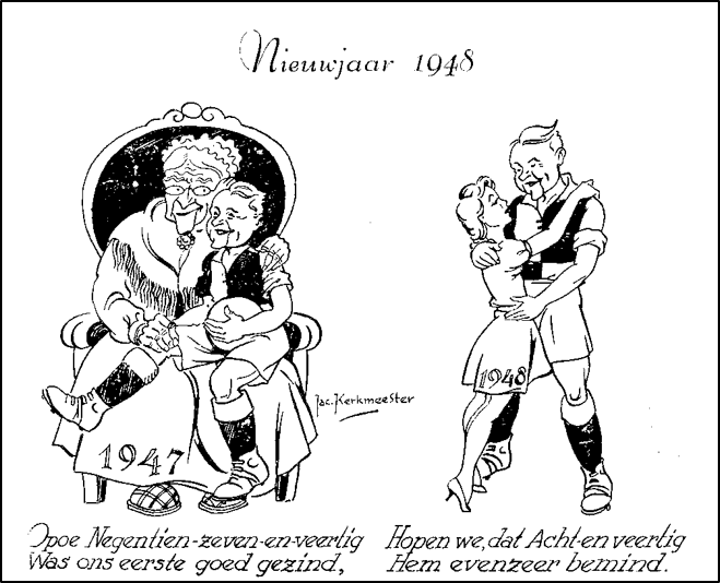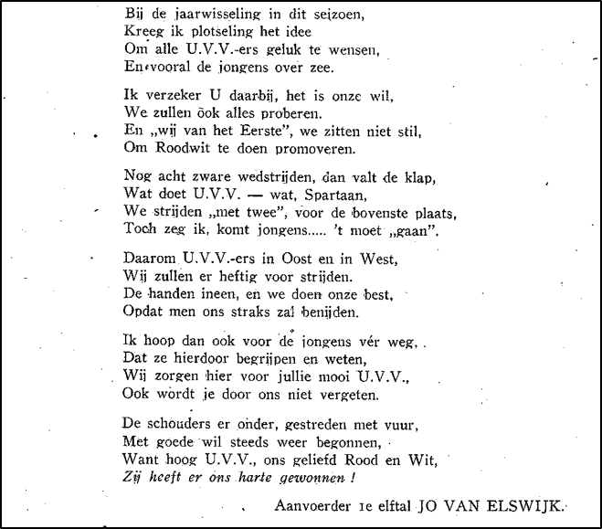 Voor de jaarwisseling maakte aanvoerder Jo van Elswijk een gedicht voorzien van cartoons, hoe kan het anders, van Jac. Kerkmeester