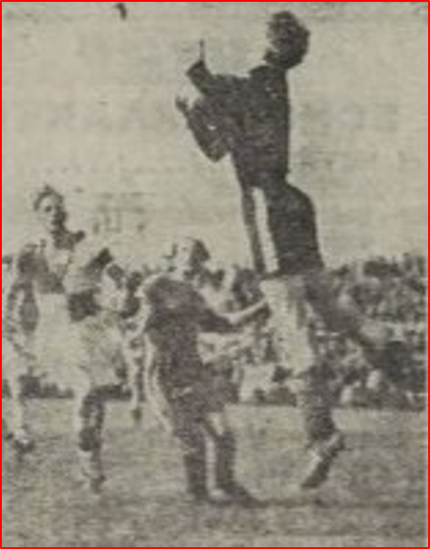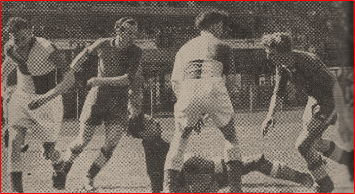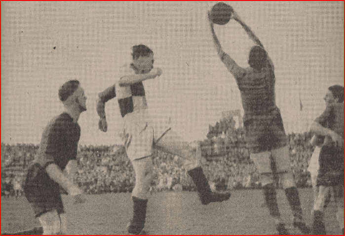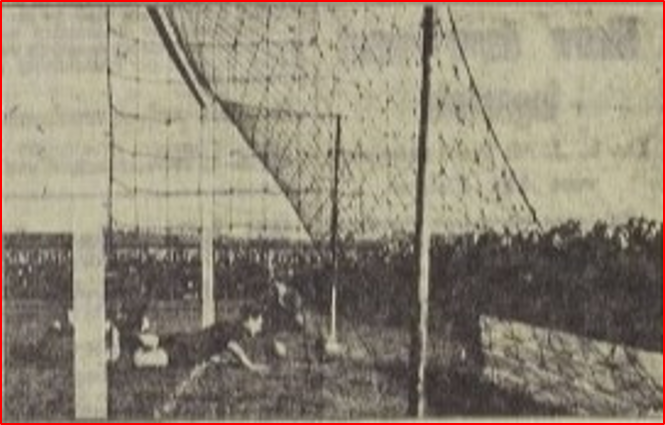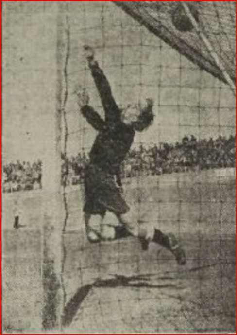 De 1e UVV goal is keeper Betiem van WFC te machtig. 14-3-1948 UVV-WFC 2-1.