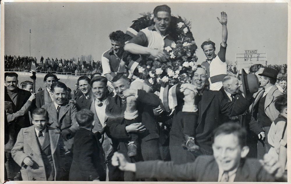 Door afkeuring van ons eigen speelveld aan de Inundatiekade werd de laatste wedstrijd in het stadion gespeeld onder de aanwezigheid van 7000 toeschouwers en bracht ons het felbegeerde kampioenschap. Vanwege de interlandwedstrijd in België begon de wedstrijd om 13.00 uur.
