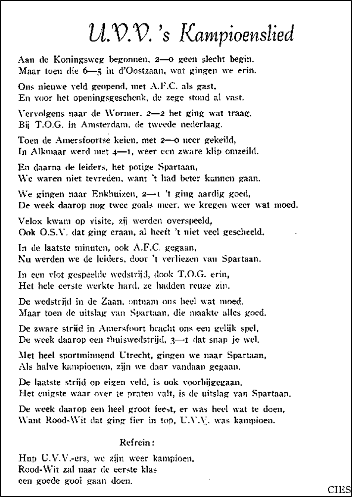 Een bekend lid kon het niet laten om een kampioenslied te componeren ter ere van het behaalde kampioenschap.