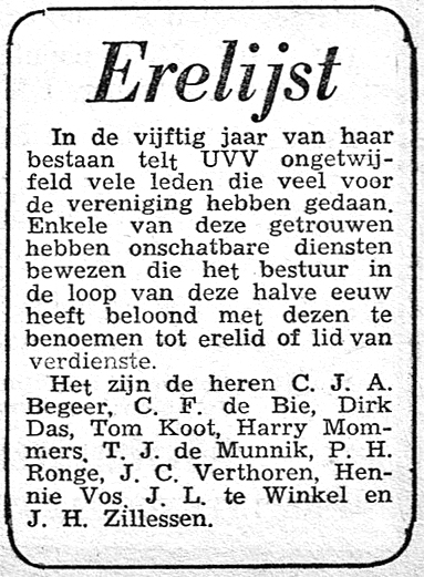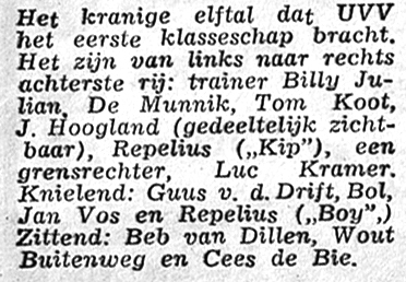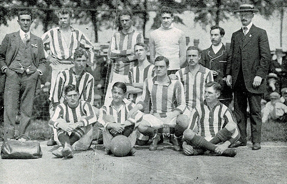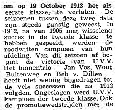 Jan Vos, de aanvoerder van U.V.V. in de strijd om het landskampioensschap in 1917.