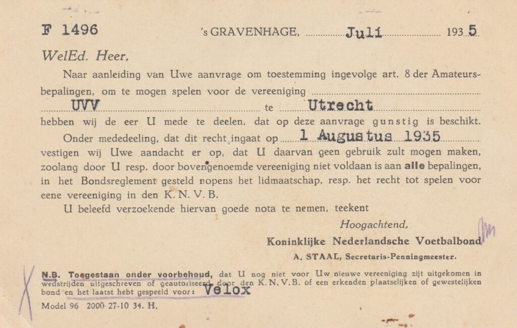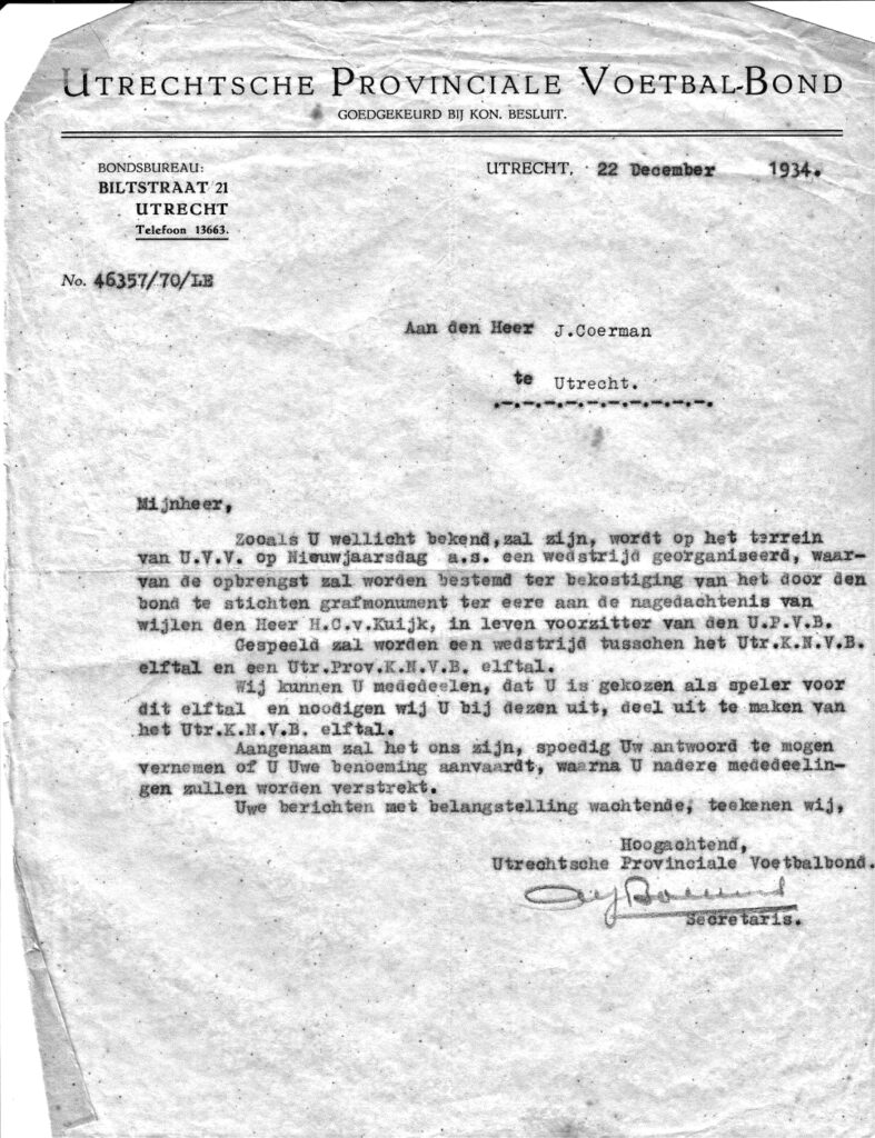 PS Door Remco Neu, oud-archivaris van FC Utrecht, werd ik attent gemaakt op Jaap Coerman. Een ller van Velox en UVV, die pas op 20 jarige leeftijd met clubvoetbal begon. Peter van Santen, januari 2017