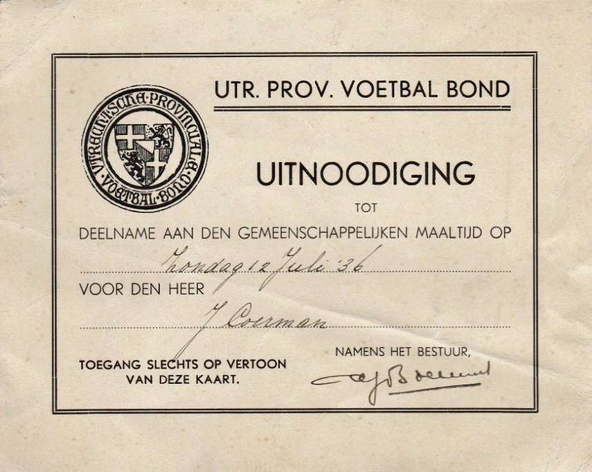 Er werd niet alleen gevoetbald bij de Utrechtse Provinciale Voetbal Bond, maar ook gedineerd.