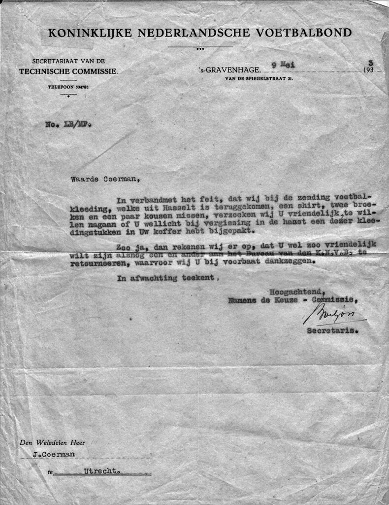 Zo kreeg men een officiële brief van de bond waarin werd verzocht ieder zijn koffer te inspecteren, want de bond mist 1 shirt, 2 broeken en 1 paar kousen. Wellicht is een en ander in de haast geschied.