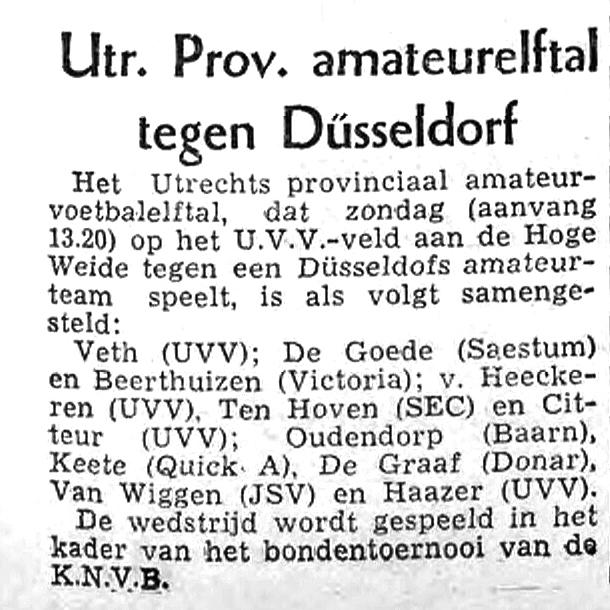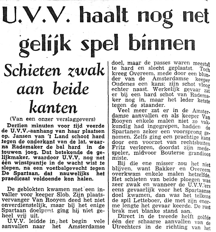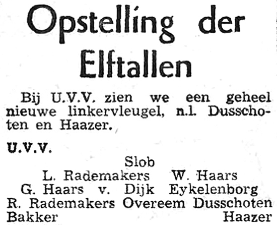 Het Utrechts Nieuwsblad kondigde op 29-1-1955  een nieuwe linkervleugel aan voor UVV1.