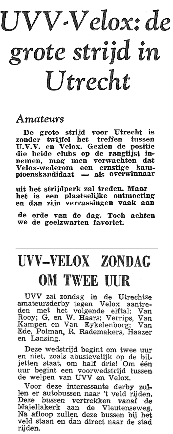 voorbeschouwing en verslag van de wedstrijd in het Utrechts Nieuwsblad