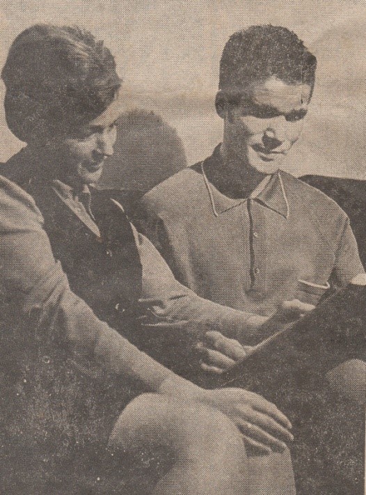 Corrie en Jan bladeren in de plakboeken. Hieronder het begeerde diploma van Jan.