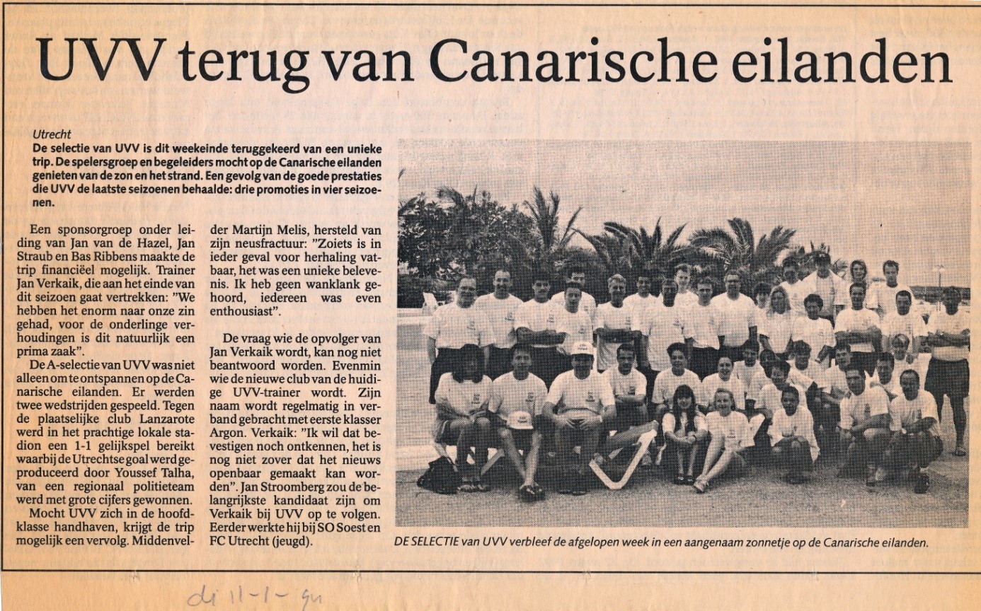 Als blijk van waardering kreeg de selectie met begeleiding een reis aangeboden naar de Canarische eilanden van 2-1-1994 t/m 9-1-1994.